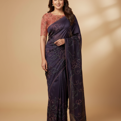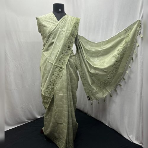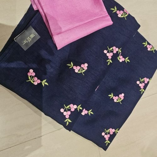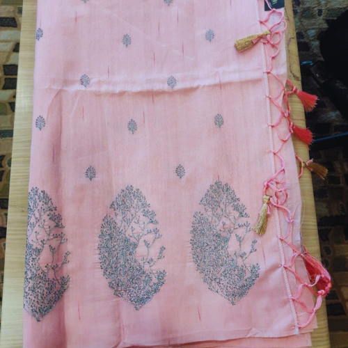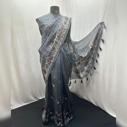 Semi linen silk full embroidery saree