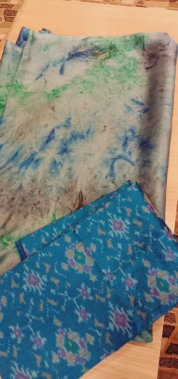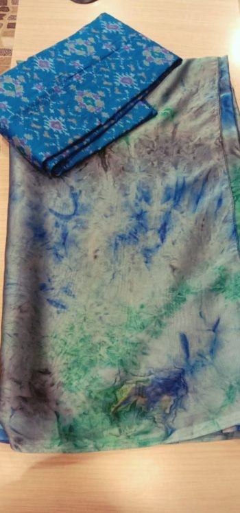 crepe silk saree with pochampally blouse piece
