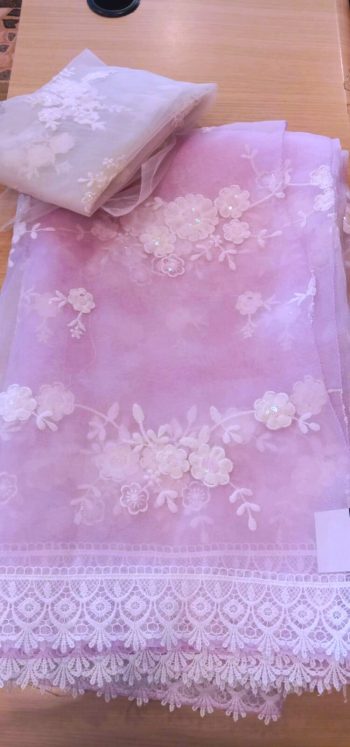 Organza full embroidery saree with Same blouse Piece