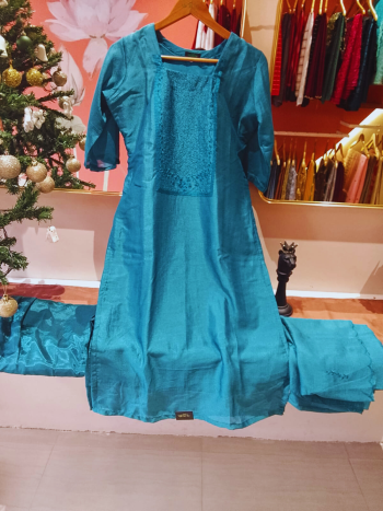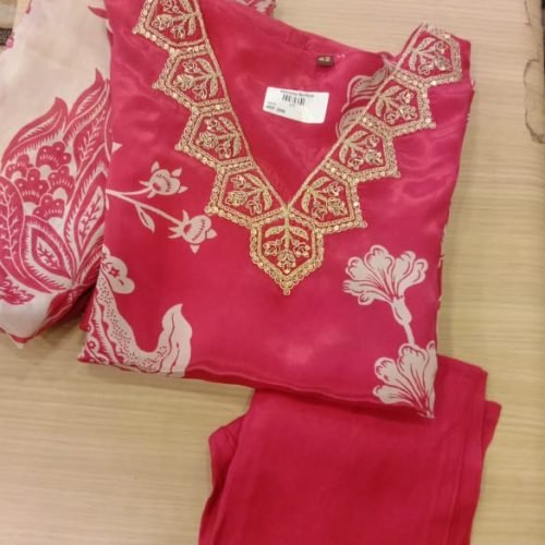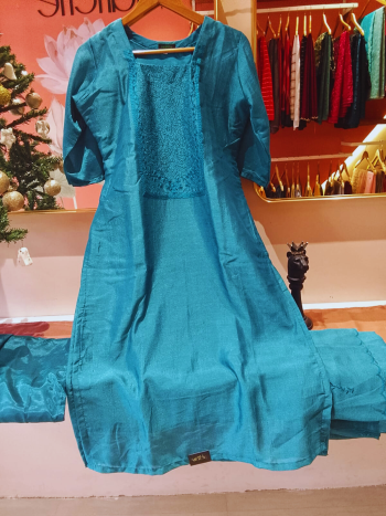 Vichitra silk salwar set set with thread sequence work